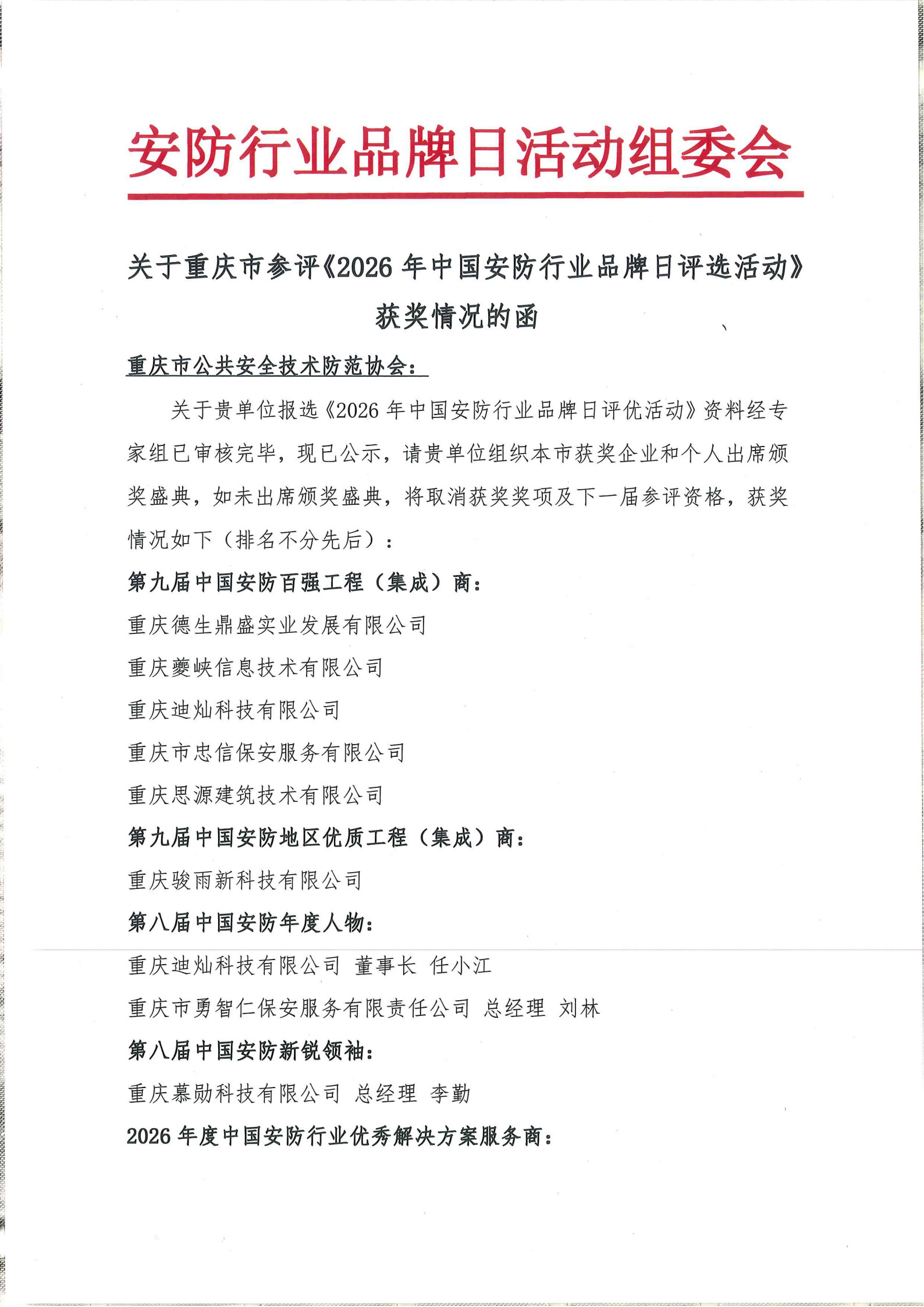 在30余个省、自治区、直辖市、地级市安防协会的联合支持下,全国安防业界积极响应、踊跃参与,“2026安防行业品牌日”评优活动经各省市协会初审、组委会组织专家终审及社会公示,评选结果现已正式揭晓。