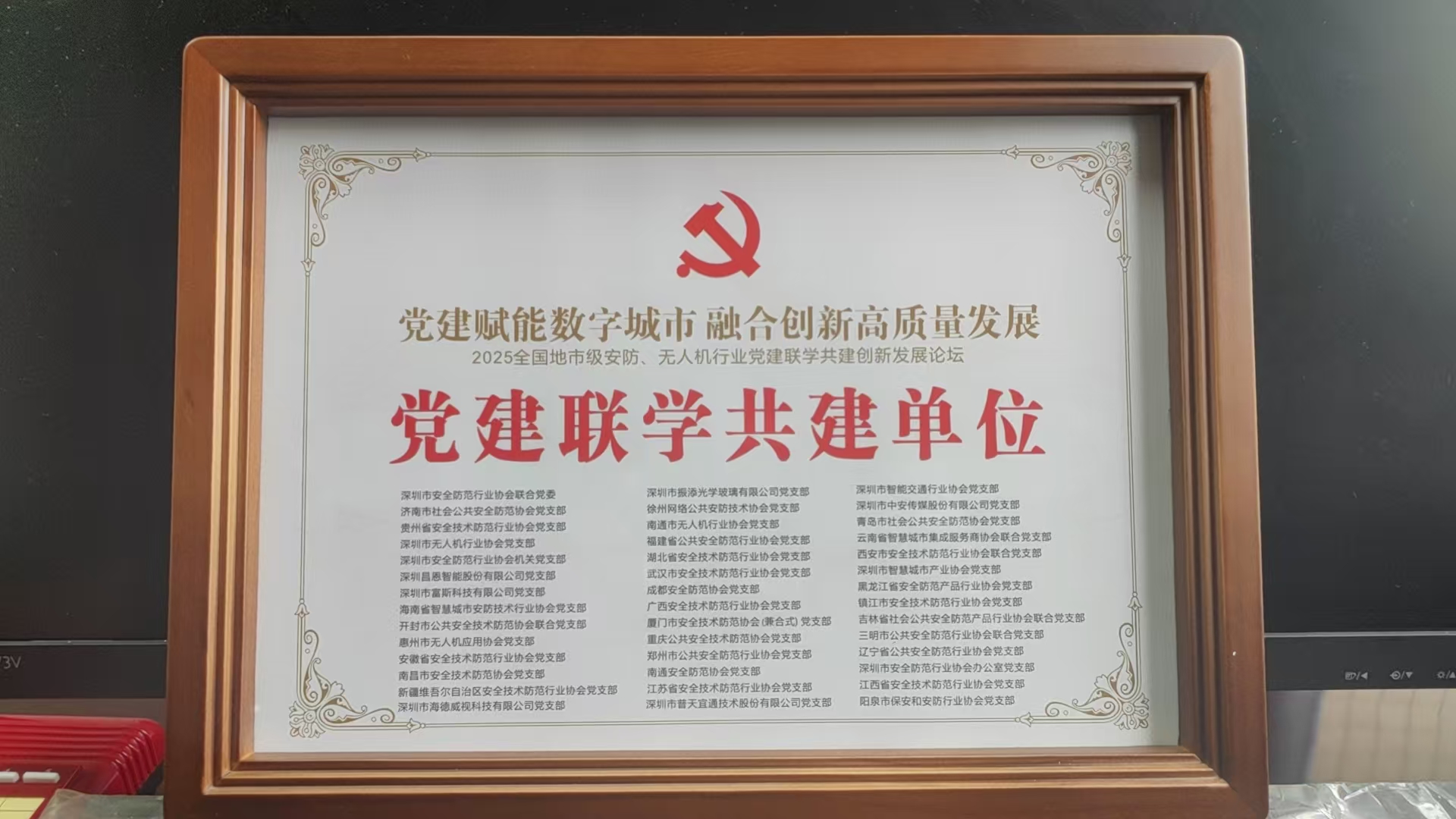 随着各项议程圆满完成,与会党组织共同发出倡议:一是倡议将“全国安防、无人机行业党建联学共建创新发展论坛”打造为年度联动平台,向全国更多省市协会推广覆盖,建立“轮值主办、资源共享、成果互鉴”机制,以组织搭台推动跨区域党建协作;二是倡议以论坛为纽带,深化“党建 + 业务”融合实践,将政治优势具体转化为“党建+数字安防”“党建+低空安全”“党建+行业服务提质”等实效,破解行业发展痛点;三是倡议持续以党的二十届四中全会精神为指引,严守中央八项规定精神,在党建赋能行业融合中探索可复制的经验模式,共同为推进社会公共安全现代化、助力低空经济高质量发展贡献行业智慧与组织力量。