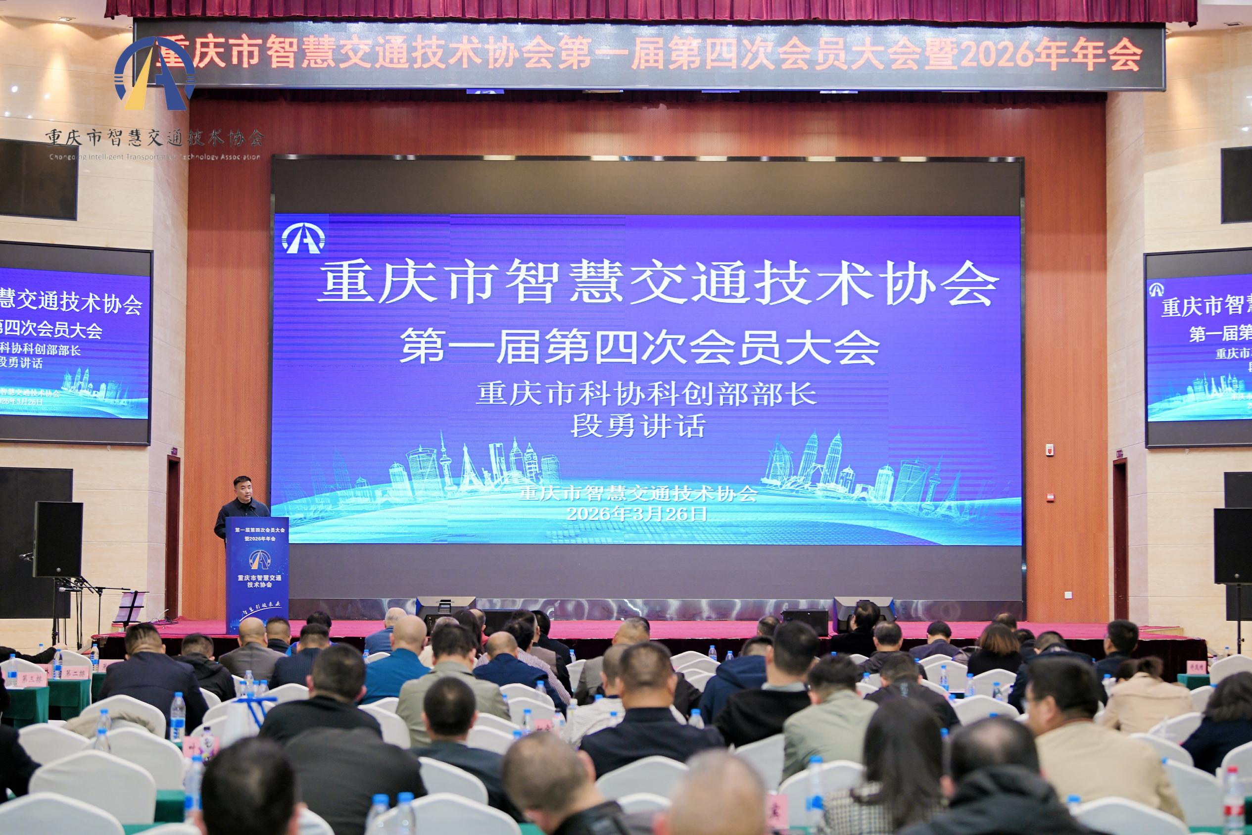2026-03-27 15:22:59 来源: 作者:秘书处 点击量:1023月26日下午,重庆市智慧交通技术协会第一届第四次会员大会暨2026年年会在重庆咨询大厦召开,市政府原副秘书长涂经平、市民政局社会组织管理局局长江文波、市科协科创部部长段勇等领导出席并讲话。我会理事长敬涌、秘书长何宇应邀参加。