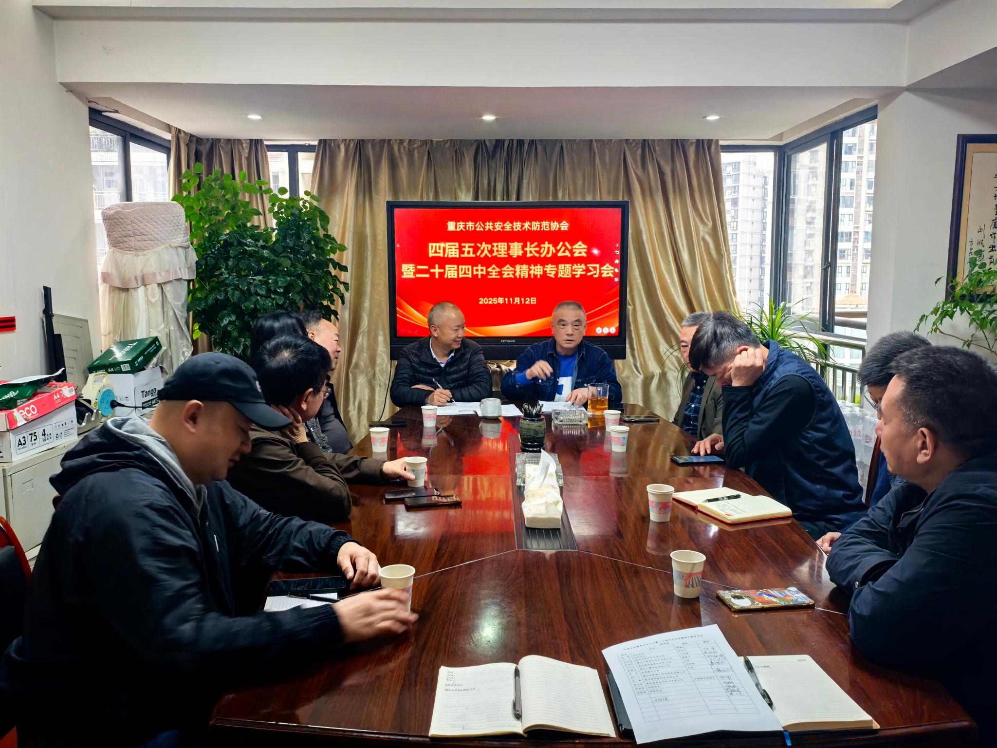 2025-11-13 15:57:16 来源: 作者:秘书处 点击量:79411月12日下午,重庆安防协会第四届第五次理事长办公会暨党的二十届四中全会精神专题学习会在协会会议室召开。协会理事长、副理事长、秘书长等班子成员并邀部分合作负责人参加会议。
